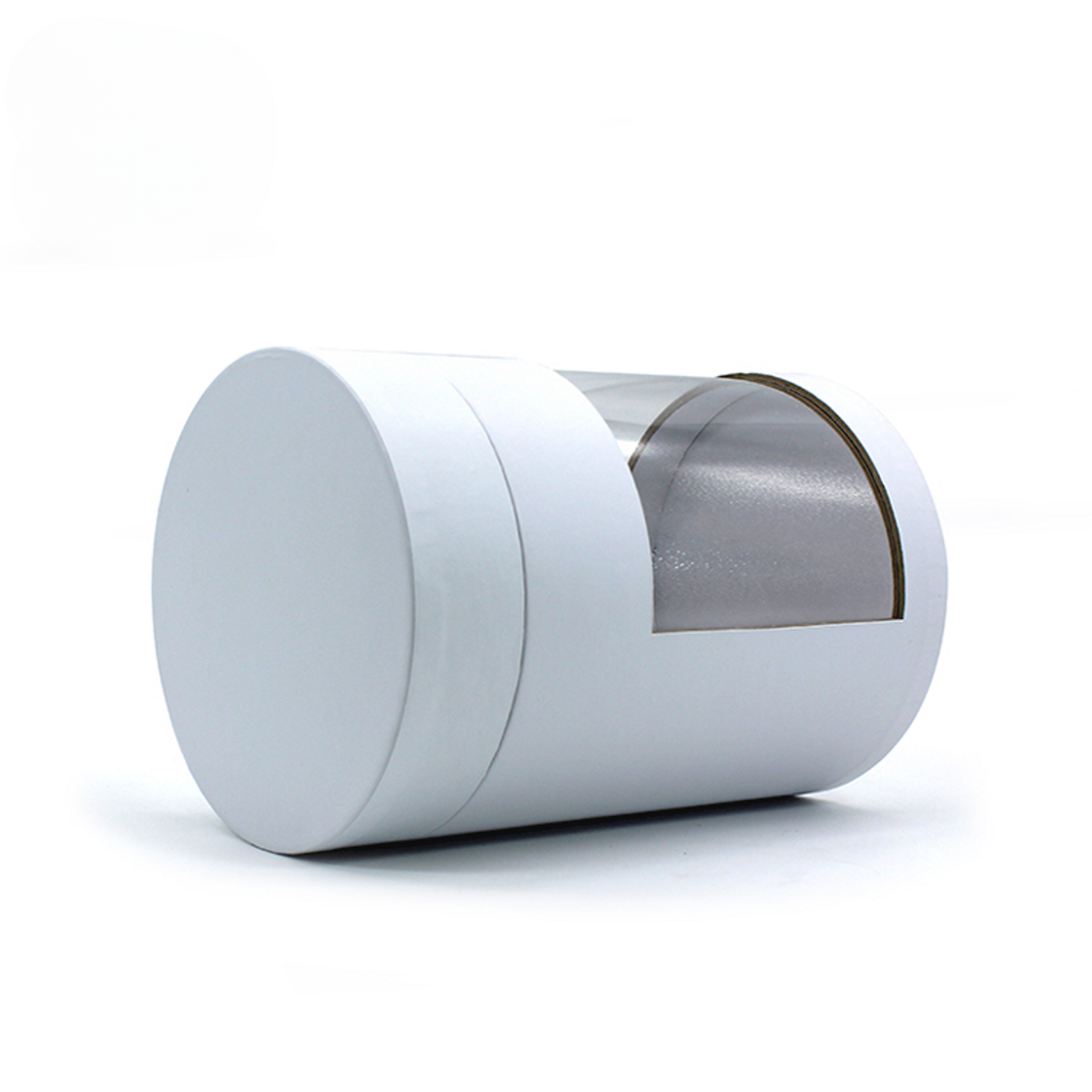 Boîte cylindrique en carton blanc avec fenêtre en PVC | Stockage du papier d'emballage